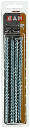 Een verpakking bevat 4 verzinkte schroeven van 7,5 x 150 mm.